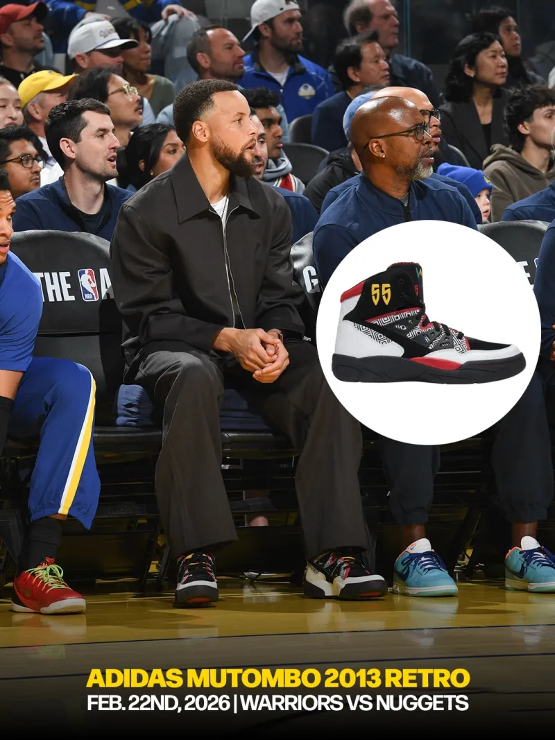 2月22日勇士主场对阵掘金的比赛期间,上脚NBA名宿迪肯贝-穆托姆博签名鞋adidas Mutomob1。