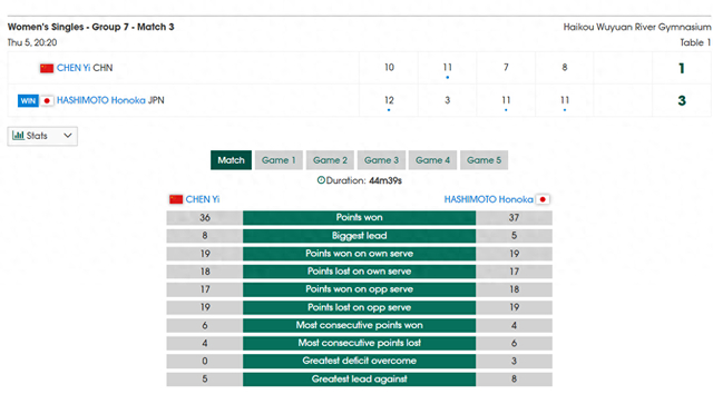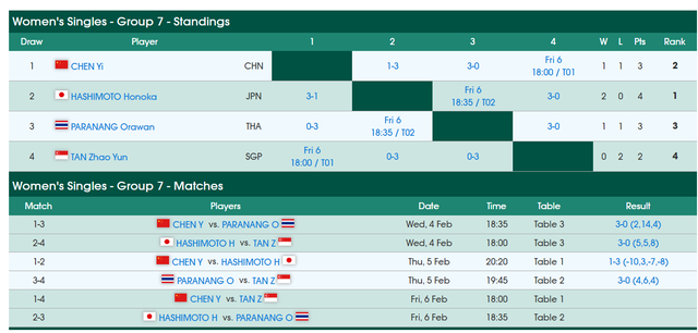 此役后桥本帆乃香二连胜小组第一,陈熠1胜1负小组第二,帕拉南1胜1负小组第三,陈熠最后一场的对手是陈昭澐,帕拉南最后一场的对手是帕拉南,所以整个G7组的形势还未明朗,如果桥本输给帕拉南,陈熠击败陈昭澐,那么最后要去算小分决出小组第一。